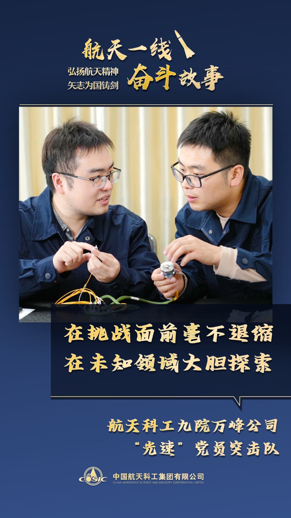 夜色濃稠,研發車間的燈光兀自亮著。“光速”黨員突擊隊的隊員們圍攏在設備前,指導工人師傅動手制作焊錫,一雙雙熬紅的眼仍舊射出犀利的光芒。